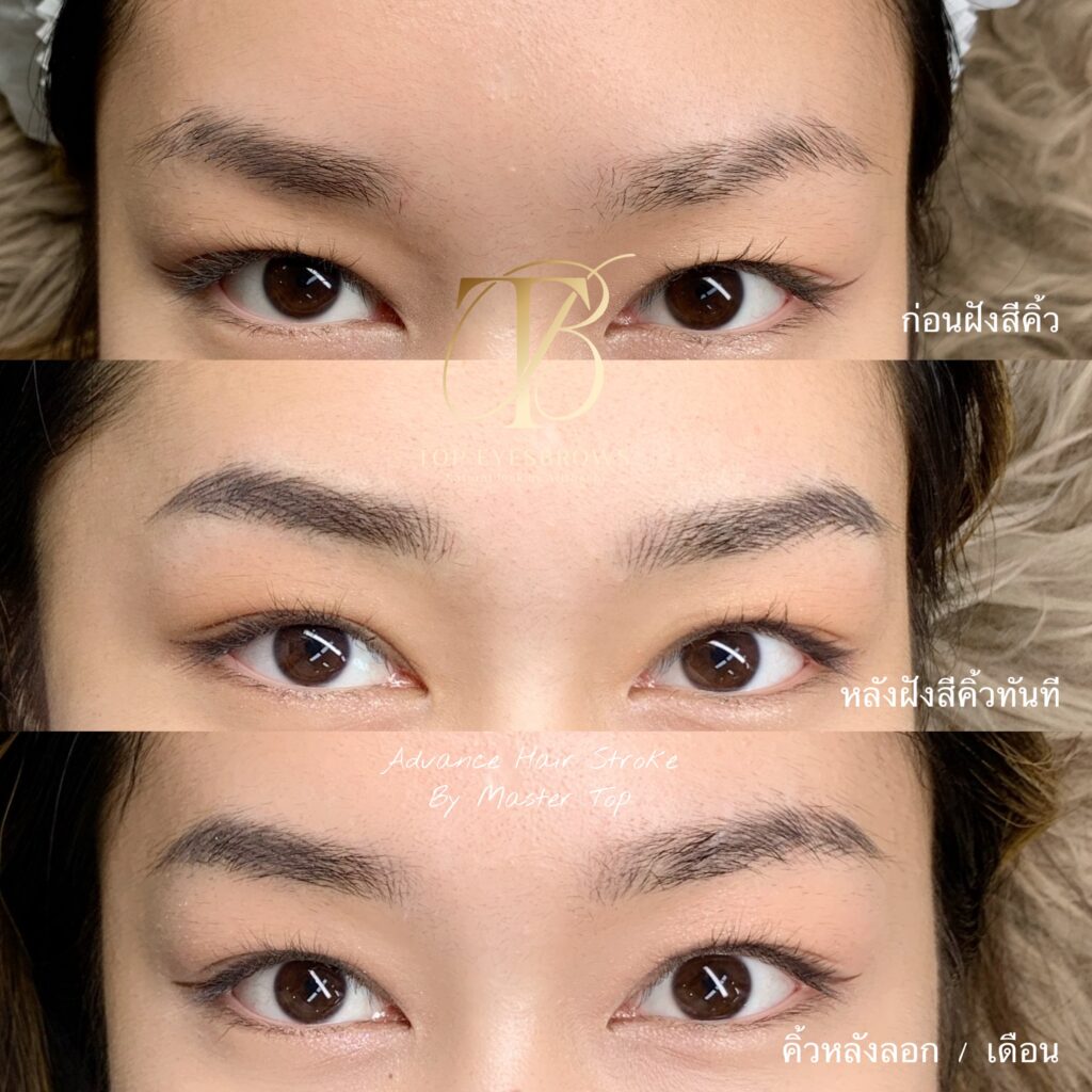 บริการฝังสีคิ้ว Advance Hair Stroke เป็นเทคนิคเฉพาะของทางร้าน Topeyebrows ซึ่งพัฒนาต่อยอดมาจากการสักคิ้ว hair stroke โดยเทคนิค Advance Hair Stroke นั้นจะใช้เครื่องมือเฉพาะที่มีคุณภาพสูงมาช่วยในการผลักสีลงไปใต้ผิวหนัง เมื่อรวมกับฝีมือจากช่างและอาจารย์ผู้เชี่ยวชาญของทางร้านแล้วลายเส้นที่ได้จึงมีความเป็นธรรมชาติสูงกว่าการสักคิ้วลายเส้นแฮร์สโตรกแบบธรรมดาขึ้นไปอีกขั้น รวมถึงยังใช้ในการแก้ไขปัญหาต่าง ๆ เกี่ยวกับคิ้วได้อย่างเห็นผล